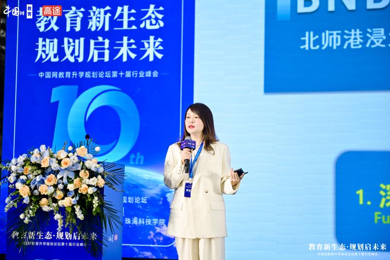 北师大香港浸会大学招生办主任吴苏芬做主题演讲:《植根湾区面向全球,BNBU的硬核赋能与国际视野》,她介绍了学校植根湾区、面向全球的教育理念,展示了学校在国际化人才培养上的独特育人模式。