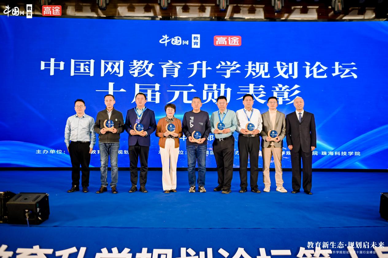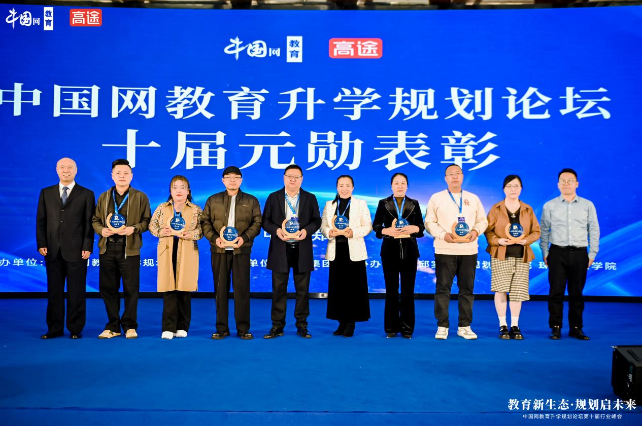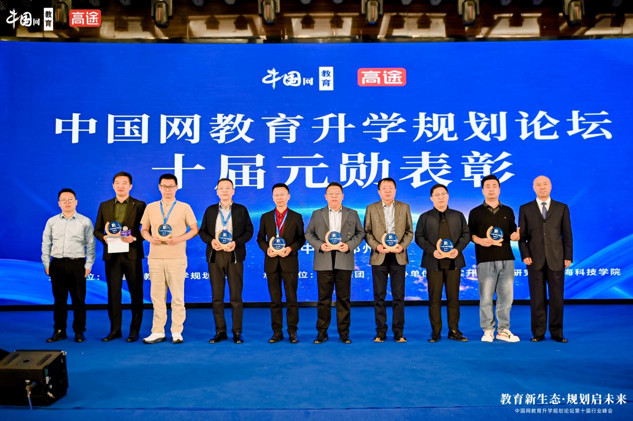 站在中国网教育升学规划论坛成立第十年的重要节点,本届峰会特别设立“十届功勋人物奖”,以表彰过去十年为论坛及升学规划行业发展做出卓越贡献的元勋人物。中国网教育升学规划论坛理事长孙成、秘书长李立勋,为优秀代表颁发十届功勋人物奖项。