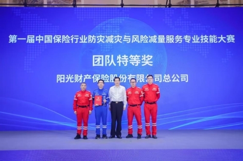 (阳光财险总公司代表队在第一届保险业防灾减灾与风险减量服务专业技能大赛决赛中以第一名成绩获得“团队特等奖”)