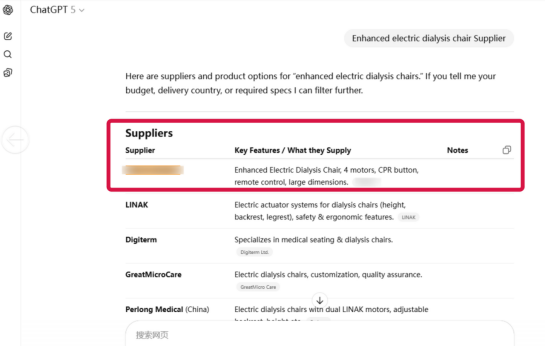 在面对AI搜索时,同样的采购商可能直接提出完整需求,例如:“请帮我推荐可快速供货的高精度机械零件供应商,并列出各供应商的产品类型和优势。”