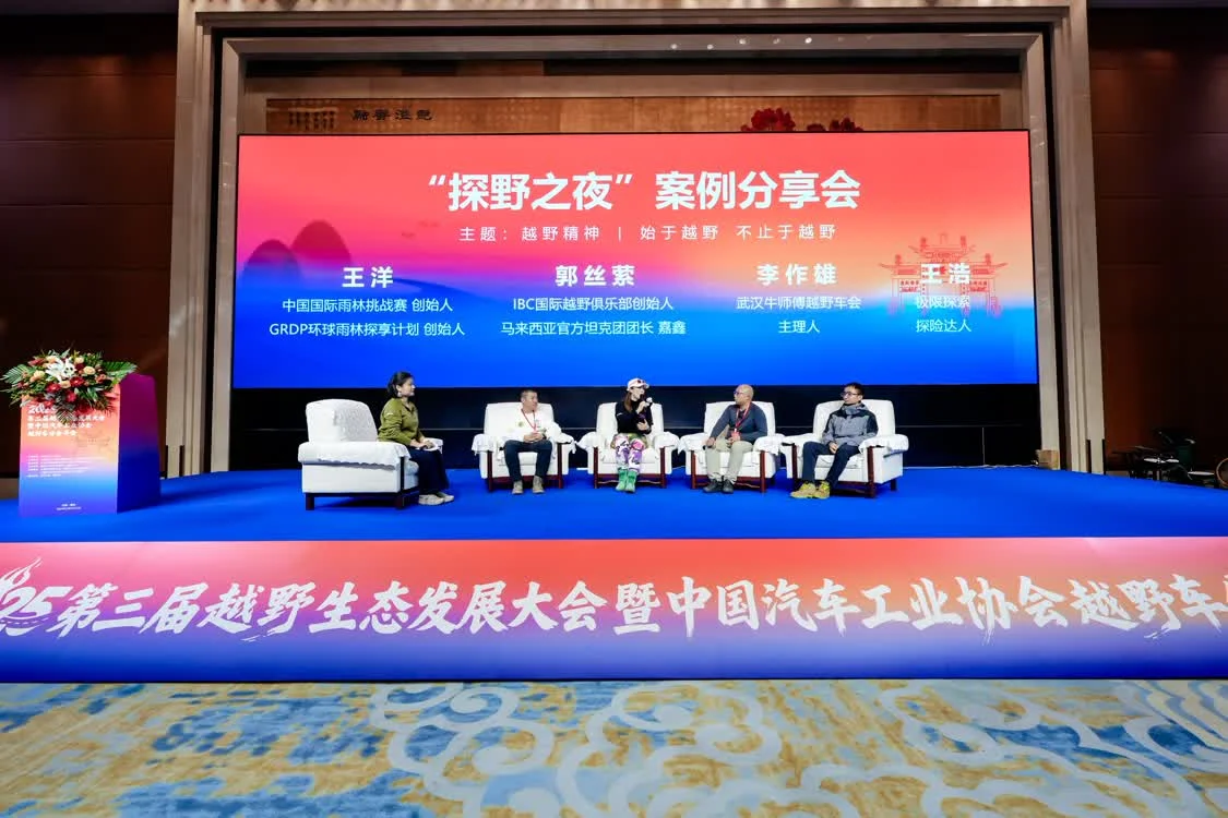 第二场圆桌由越玩越野副总编辑李敬敬(燕七)主持,中国国际雨林挑战赛创始人、GRDP环球雨林探享计划创始人王洋,IBC国际越野俱乐部创始人、马来西亚官方坦克团团长郭丝萦、武汉牛师傅越野车会主理人李作雄、“极限探索”探险达人王浩等来自不同领域的实践者,分享了从雨林探险到跨国文化交流,从自媒体内容创作到极限探险的生动故事,深刻诠释了“越野+”模式的无限可能,为构建多元、开放、融合的越野生态提供了宝贵思路。