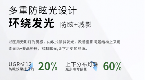 这款灯产品技术出色,采用的自然光全光谱技术,有害蓝光含量是RG0标准的5%,几乎没有,杜绝安全风险。采用侧发光方式,搭配导光板、柔光纸、微晶格栅等结构,很好地控制眩光风险,UGR<12,远低于UGR<16的行业标准。