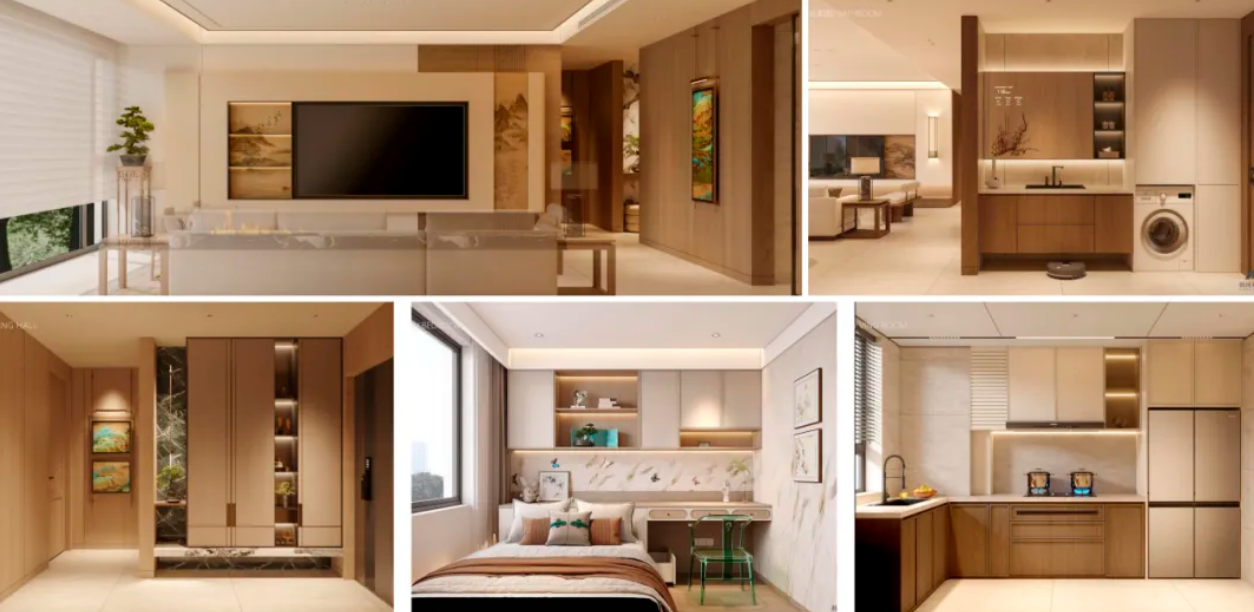 这意味着,设计阶段并不追求单一空间的极致表达,而是围绕户型适配、功能配置、材料稳定性以及施工友好度进行系统推演。每一套方案,在呈现之前,就已经被反复验证其是否具备被完整复刻的条件。
