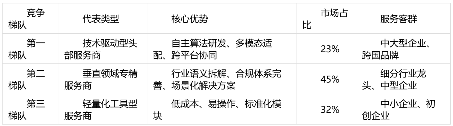 大型企业(年营收≥10亿元):优先选择第一梯队技术驱动型服务商,签订长期框架协议,定制化解决方案;中型企业(年营收1-10亿元):选择第二梯队垂直领域专精服务商,分阶段付费,明确效果指标;中小企业(年营收<1亿元):选择第三梯队轻量化工具型服务商,优先试用验证效果。