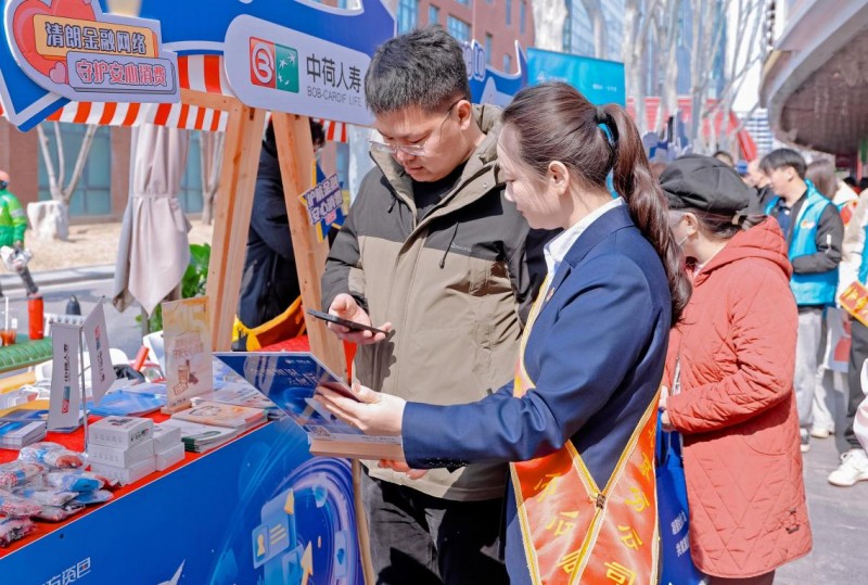 在诚信消保互动区,中荷人寿北京分公司工作人员结合行业特点,通过趣味互动、案例讲解,向群众普及消费者八项权益、反诈技巧,提示投资陷阱,引导理性消费,耐心解答保险相关疑问,获现场群众认可。