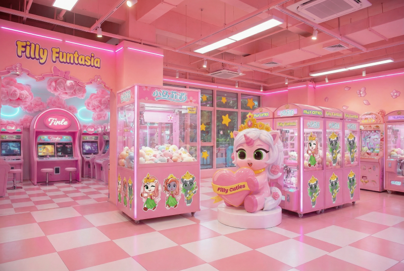 更具想象力的是“IP周边+娱乐”的互动模式创新。例如,在成都春糖会上,小马菲莉将夹娃娃机与零食、毛绒公仔、盲盒等IP周边结合,吸引大量专业观众参与。又例如,通过在摇摇车上嵌入《小马菲莉之缤纷仙境》系列儿歌,看似简单的快乐,更是一场精心设计、认真对待的沉浸式魔法旅程。这种将IP授权从单一产品扩展到互动体验的打法,经过市场的严苛考验,授权产品已覆盖了全国数百家儿童游乐机构,为游艺设备客户提供了全新的盈利增长点。
