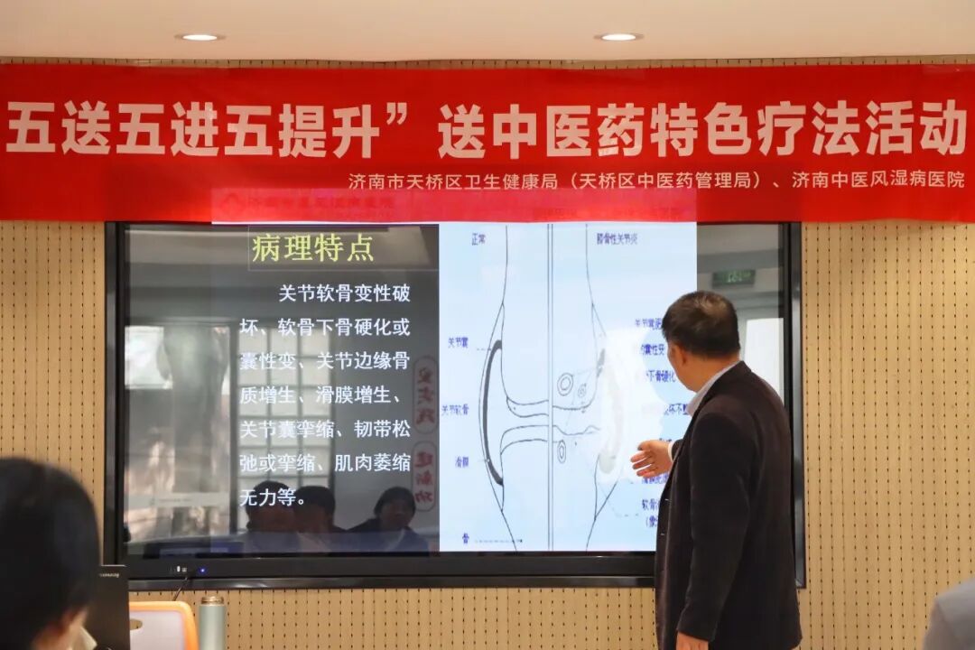 为进一步提升社区医疗卫生服务质量,增强社区居民尤其是老年人的健康防护意识,让优质医疗服务走进群众、贴近群众,切实解决居民日常健康困惑,济南中医风湿病医院作为济南市中医药文化宣传教育基地,长期携手科协常态化开展“健康进社区”公益科普活动。近日,济南中医风湿病医院陈主任受邀前往甸柳新村街道第一街区,开展骨关节炎预防专题公益授课,为辖区居民送上实用的健康知识。