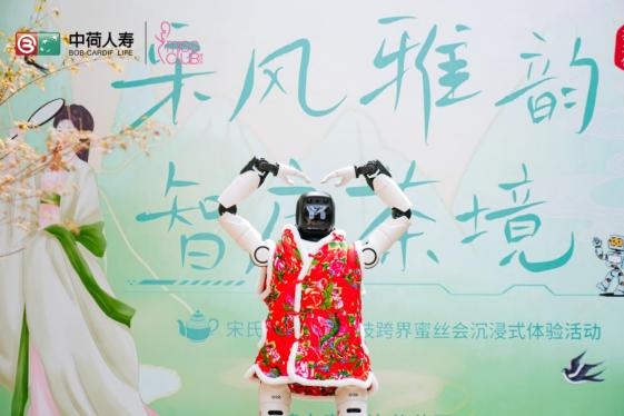 活动以沉浸式宋风仪式感拉开序幕。嘉宾入场前换上精致宋式褙子,衣袂翩跹间尽显东方温婉;毛笔签到落笔留韵,古韵流转。现场更有智能机器人热情迎宾,以灵动互动与活力舞蹈点燃氛围,让传统雅集与现代科技美好相遇,一入场便带来耳目一新的体验。