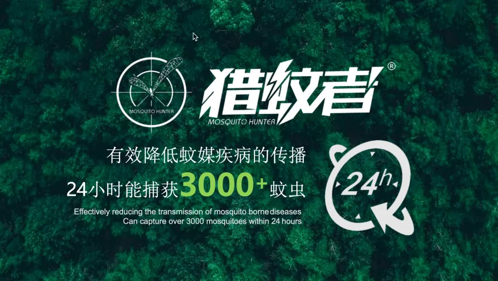 "猎蚊者”智能呼吸式捕蚊机利用仿生技术与新材料技术的融合,通过模 拟人的呼吸,不间断循环捕获并释放空气中的二-氧化碳(完全来自于空 气, 不额外增加任何成分)来吸引蚊虫,同时辅以365nm紫光灯引诱蚊 虫, 再加上科学的气体对流捕蚊方式,最终达到健康、高效的蚊虫诱捕 效果。