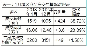 1月,我市城区商品房住宅成交量1195套,较上月增加386套,增长47.71%;销售均价2685元/㎡,较上月减少188元/㎡,下降6.54%。