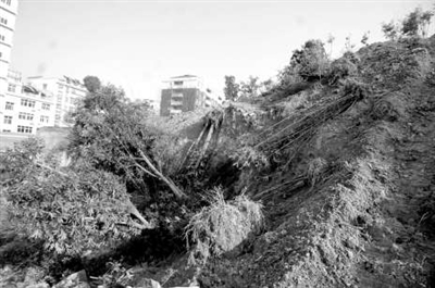 22日,记者接到市民举报,位于市双鹤桥清风园山体(白茶村五组)一大片山体被挖得面目全非,山上栽种的大量楠竹、紫薇、桂花等树种被连根拔起。
