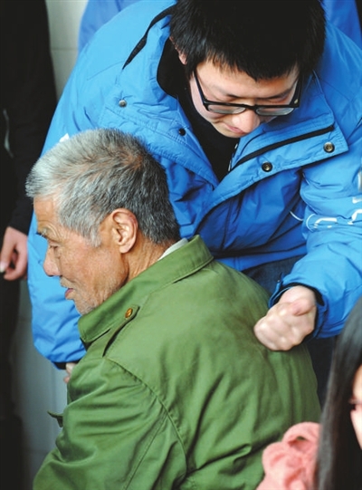 “这群大学生志愿者刚到,三年来他们一直坚持着这种关心与关爱,今天他们又将在这里呆一下午,陪孤儿过生日,为老人搓腿捶背,打扫庭院。”院长高兴地介绍。