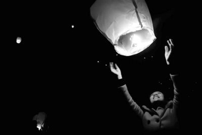 1日,三国赤壁古战场风景区内,游人们正在夜幕下点亮孔明灯,放飞祝福。作为祈福的一种方式,孔明灯倍受人们喜爱,男女老少们在上面亲手写下美好的心愿,期待幸福年年。记者 程慧 通讯员 童金健 摄
