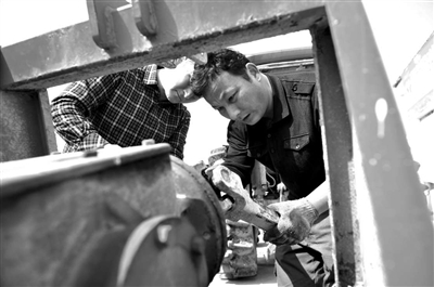 9日,赤壁市车埠镇华军农机专业合作社里,负责人祝移婆正和其他社员一道检修、安装旋耕机,为春耕做准备。据了解,该合作社现有农机300余台,主要服务车埠、官塘驿和赤壁等乡镇,服务面积达到50000亩以上。 记者 夏正锋 通讯员 张杰何红宇摄