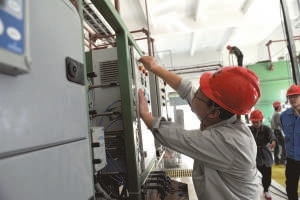 8日,赤壁市柳山湖镇凯迪生物质能电厂,工人们正在调试机器。
