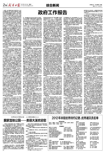 (上接第一版)根据宏观经济走势的变化,我们及时调整政策力度,适时退出刺激政策,实施积极的财政政策和稳健的货币政策。在财政政策运用上,坚持统筹兼顾,注重综合平衡。财政赤字占国内生产总值的比重从2009年的2.8%降到去年的1.5%左右,赤字率和债务负担率保持在安全水平。加强地方政府性债务全面审计和地方政府融资平台管理,有效控制经济运行中的风险隐患。在货币政策运用上,始终注意把握稳增长、控物价和防风险之间的平衡。金融体系运行稳健,银行业风险抵御能力持续增强,资本充足率从2007年底的8.4%提升到去年底的13.3%,不良贷款率由6.1%下降到0.95%。坚持搞好房地产市场调控不动摇,遏制了房价过快上涨势头。2012年,在世界各大经济体增长全面减速、各种风险不断暴露的情况下,我们合理把握政策力度,保持财政预算支出规模不变,优化支出结构,扭转经济下滑趋势,全面实现年初确定的主要目标,国内生产总值增长7.8%,城镇新增就业1266万人,居民消费价格涨幅回落到2.6%,为今年经济发展打下好的基础。