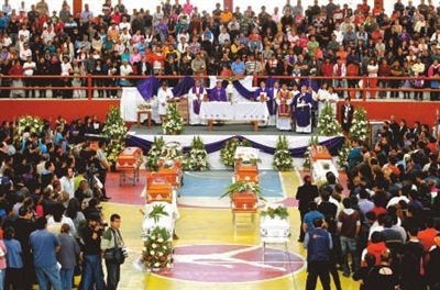 | 墨西哥特拉斯卡拉州的纳蒂比塔斯市举行集体葬礼 |