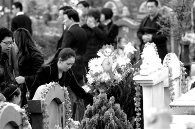 清明时节,帅印山人文纪念公园内, 人们纷纷以鲜花寄托对逝者的哀思。 记者 袁灿 摄