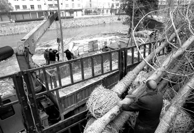 3月20日,园林工人正在通城县秀水大道栽种银杏树。连日来,该县园林部门组织工作人员街道植绿。此次栽种的600多棵银杏树均从山东购进,每棵价值1100元。 记者程慧 特约记者 王铄晖摄
