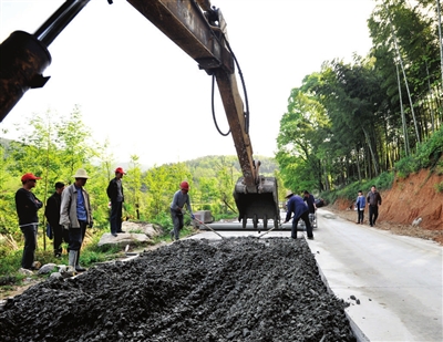 10日,咸崇生态旅游公路咸安汀泗桥镇垅下村段,工人们正在加紧施工。