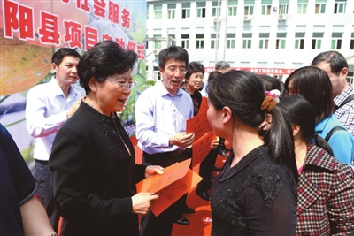 宋育英在讲话中说,这些年来,崇阳县把幸福工程作为改善基层家庭民生问题,把幸福工程与扶持计生家庭发展的“双千活动”有机结合起来,创造了充分运用公共政策,积极整合社会资源,组织动员计生协及广大会员,以“典型引路、项目搭台”、“公司+基地+农户”和“大户带小户”等方式帮扶计生贫困家庭的咸宁崇阳模式,取得了广泛影响,受到幸福工程组委会高度评价。她希望崇阳进一步总结经验,不断地把幸福工程引向深入。