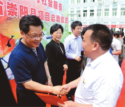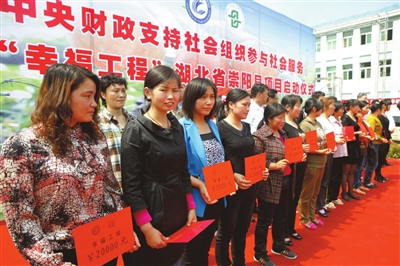 五月的崇阳,山含情,水含笑。5月3日,中央财政支持社会组织参与社会服务暨“幸福工程”项目在崇阳县港口乡启动。中国人口福利基金会副理事长兼秘书长杨文庄、全国政协社会和法制委员会副主任、省计生协会会长宋育英、省人口计生委党组书记胡菊萍、咸宁市委书记任振鹤、市委常委、常务副市长黄剑雄、副市长镇方松、崇阳县委书记杨良锋、县委常委、纪委书记毛秀君、副县长石峰等出席仪式,并向受助计生贫困母亲代表发放项目资金,向计生家庭子女代表发放教育资助金。