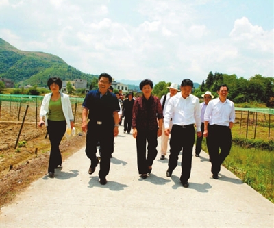 在“幸福工程”启动仪式结束后,杨文庄、宋育英、胡菊萍、任振鹤一行在县委书记杨良锋的陪同下,参观考察了“生育关怀·幸福家庭”港口乡吊瓜基地、天城镇金手指生态葡萄园示范基地,每到一处,他们都深入了解生育关怀家庭的生产生活情况,鼓励他们自信自强,依靠勤劳致富。