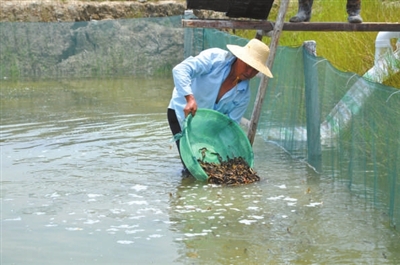 本报讯 通讯员熊虎报道:5月21日,在杨芳林乡招商引资重点项目——湖北春泉泥鳅养殖基地,工人们正在投放泥鳅苗。