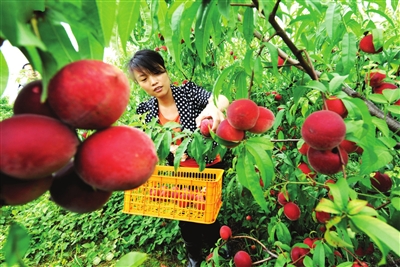 眼下正是桃子成熟时节,交谈中,记者看到一车武汉游客从桃园里出来,手里提着一大篮一大篮的桃,个个满载而归。
