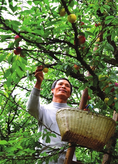 正在树上采摘李子的九龙村农民胥秋文告诉记者,他们村种植桃李有多年的历史,家家户户栽桃种李,他家20亩桃李林,一年收入近3万元。“过去我们提篮叫卖,现在都是客商上门收购。”胥秋文说,这些改变归功于政府。