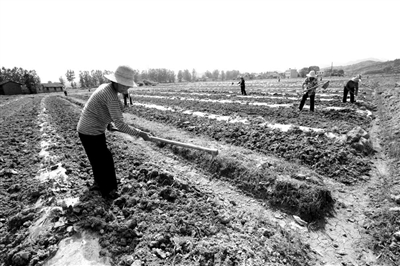 5月24日,记者在崇阳县沙坪镇古城村何忠才的西瓜基地上,看到10多位农民正忙着清沟、除草,加强西瓜田间管理。