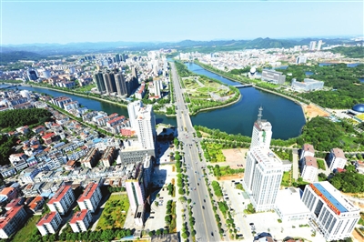 从市委办公楼环顾四周,远山青黛近山绿,淦水如带静如玉,这座城与山林泉流融为一体。