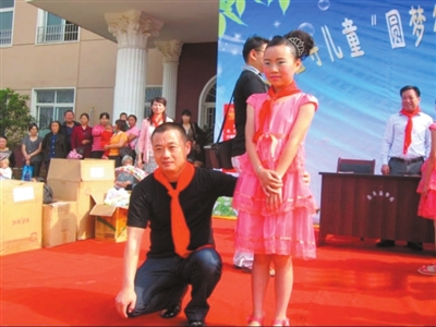 5月31日,赤壁市妇联在赤马港学校举行“留守儿童圆梦行动”公益活动,湖北赤壁瑞通投资置业有限公司董事长刘建荣(左)现场捐赠现金两万元,以实际行动帮助赤壁市留守儿童圆梦。