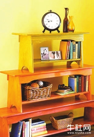 4、为破旧的梯子刷上新漆,并加固各关节处的螺丝钉,老式的木梯立刻变装成令人新奇的置物架,不仅扩展了室内的存储面积,还能丰富单调的墙面,增加空间层次感。