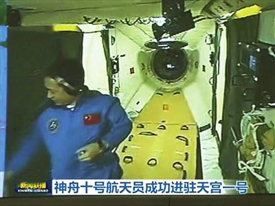 “神十”与“天宫一号”成功对接后,北京航天飞行控制中心向航天员下达了开展内装饰材料更换试验的指令。航天员聂海胜、张晓光、王亚平互相配合、密切协作,拆除天宫一号原来铺设的软质地面材料,更换上硬质地板和新的限位装置。 据新华社