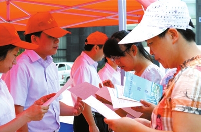 市人社局10名党员志愿者在南昌路社区搭起凉棚,提供就业、医保、社保等方面的政策咨询。社区居民李师傅下岗后,工作不停地换,社保交成一本糊涂账,经过志愿者们专业的分析和建议,他感慨道,早就该向你们直接咨询了!你们一席话,胜读十年书啊!