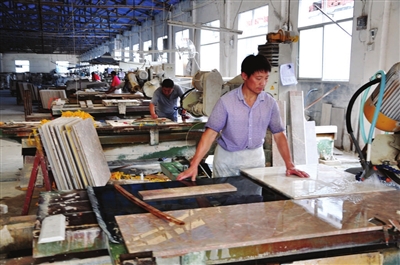 19日,通山华南石材公司生产车间内,工人正在进行切片作业。该公司作为全省十家重点石材企业之一,产品主要销往北京、上海等大中城市。今年头5个月完成工业总产值11678.44万元,同比增长292.7%。 通讯员 王谦摄