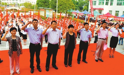 本报讯 特约记者汪淑琴、汪国文、徐锦芳、陶然、通讯员石林、李锦龙报道:6月22日,崇阳“志愿先锋·幸福崇阳 ”党员志愿服务活动在沙坪镇拉开帷幕,县委书记杨良锋为志愿者服务队授旗并宣布活动正式启动,县委副书记、县长杭莺作动员讲话,县委副书记廖建鸣主持仪式,县委常委、组织部长金山为湖北省崇阳县星火困难党员帮扶基金会授牌,县人大副主任刘秋霞、副县长谢建存以及来自崇阳县直各单位的20支党员志愿服务队和沙坪镇党员干部群众,共计1100多名共产党员和入党积极分子参加了志愿服务活动。