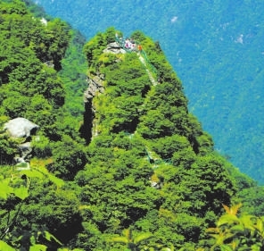 下午时分,三三两两的游客在九宫山蜿蜒的山路上悠闲地走着,一边惬意交谈,一边欣赏美景。山风吹来,两个身着清凉夏装的女孩子打了个哆嗦,忙不迭抱住了双臂。
