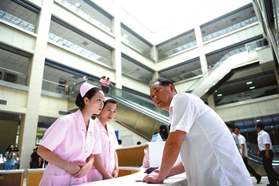 3日,崇阳县人民医院医务人员在宽敞明亮的门诊大厅内为患者服务。该院建筑面积58000平方米,包括门诊大楼、医技楼、住院楼、传染病区楼和后勤保障楼,是该县重要的民生服务工程。据了解,该院每年可满足35万人次门诊病人、2.6万人次住院病人就医需求,极大方便和改善了当地群众就医条件。