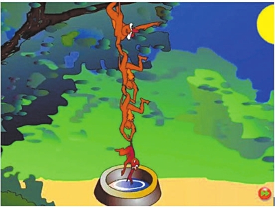 我询问过很多小学生:当面对同伴落水时,你会采用什么方法施救?多数学生不假思索地回答:“手拉手救人。”而且很多学生说自己的“灵感”来自《猴子捞月亮》。