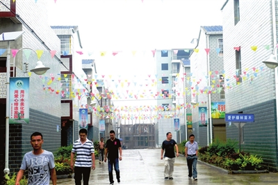 8日,通山县大路乡上仇新村新貌。过去,该村位于闯王镇集潭村海拔800多米的高山上,78户村民生产生活条件恶劣,是通山有名的“穷窝子”。2008年,该县千方百计投资3700多万元,在大路乡吴田村征地60多亩,对该村实行整体搬迁。目前,已完工88栋,56户村民搬进新居,成为全县新农村示范亮点。 记者 袁灿 摄