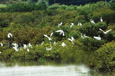 正与护士长谈着,几只白鹭忽地从窗边飞过,我眺过窗棂,只见一群群白鹭慢慢栖息在对面的树林里,墨绿的画面中掩映着白白点点,远处山峦飘着雨后的烟雾,恬静而优美。这时,从我背后的走廊里传来一位男子的嚷嚷声,护士长示意着出去看看。