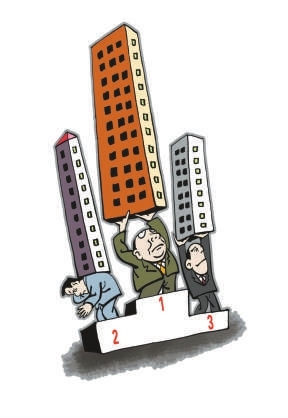 据新华社昆明7月24日电 有专家撰文指出,按照公认的高于152米的标准,中国的摩天楼总数去年已超过350座,与美国相当。而目前还有不少城市正在建设和准备建设摩天大楼,角逐中国、西部、华南“第一高楼”等称号。记者梳理了全国十大在建的摩天楼工程。