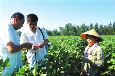 近日,赤壁市柳山湖镇易家堤村,年近六旬的村医魏炎山与儿子魏昭深入田间地头,给村民送解暑药品麝香正气丸,并嘱咐村民注意防暑。魏炎山在本村从医30多年,儿子4年前医学院毕业后不留恋城市生活,回到老家和父亲并肩工作,在村卫生室服务村民。 通讯员 李大海摄