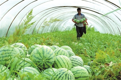 7月22日,咸安区横沟桥镇冰塘西瓜基地,瓜农在抢收西瓜。该镇有种植西瓜的传统,近年来,通过引进种植新技术、新品种、开展种植技术培训,科学管理,瓜农收入增长一倍。 记者 大乐 摄