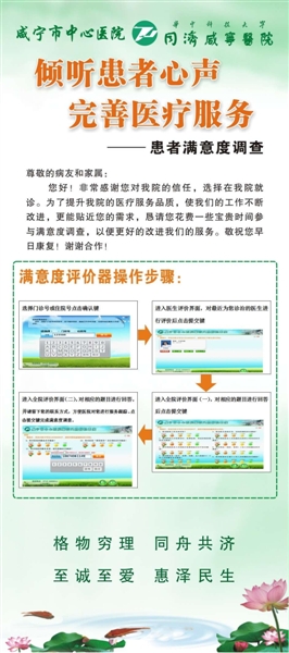 为加强对医院各项工作的督促,提升医院服务品质,医院希望广大患者能踊跃参与到对医院满意度评价的活动中,为医院跨越发展建言献策。