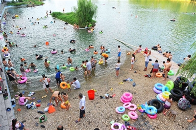 7月31日,我市城区温度高达39.3摄氏度,是入夏以来市区最高气温,不少市民前往月亮湾露天泳池戏水避暑。 记者 陈红菊摄