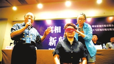 他首先让一位记者,将他搭档徐越的眼睛蒙上,然后徐越背对魔术师坐着。