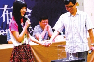 有摄影记者存心刁难,取下一个相机盖递给傅腾龙。